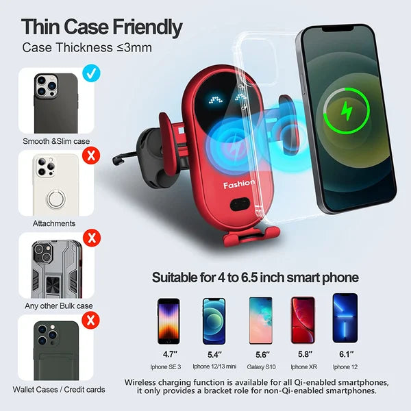 Dit product is compatibel met de meeste smartphones, werkt alleen met Quick Charging-apparaten die geschikt zijn voor Qi-technologie en kan eenvoudig worden geïnstalleerd op de ventilatieopeningen van bijna elk voertuig. Er is geen gereedschap nodig.